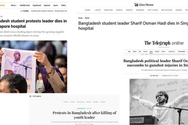আন্তর্জাতিক গণমাধ্যমে ওসমান হাদির মৃত্যুর খবর